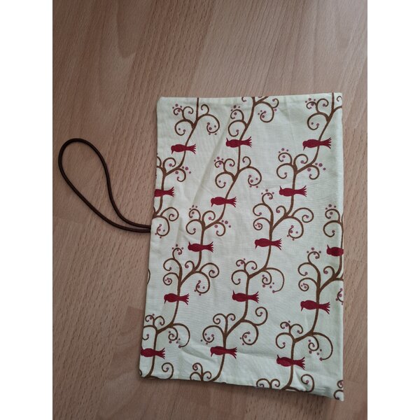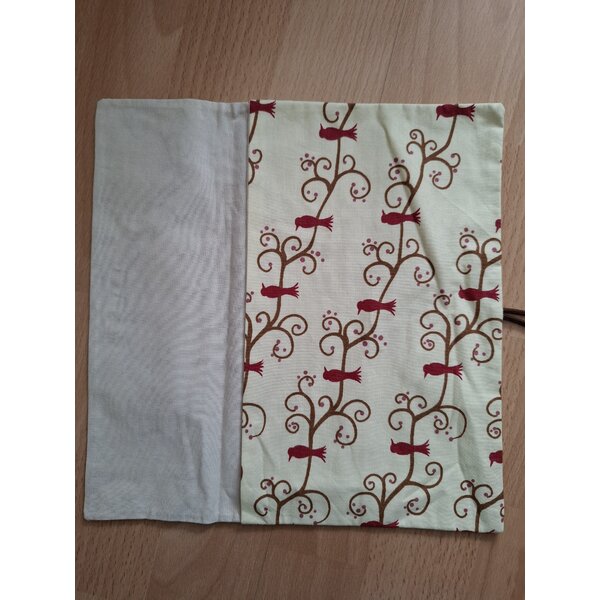 Büchertasche doppellagig genäht, ohne Fütterung, mit Gummiband zu verschließen, ca 17 x 26 cm groß.