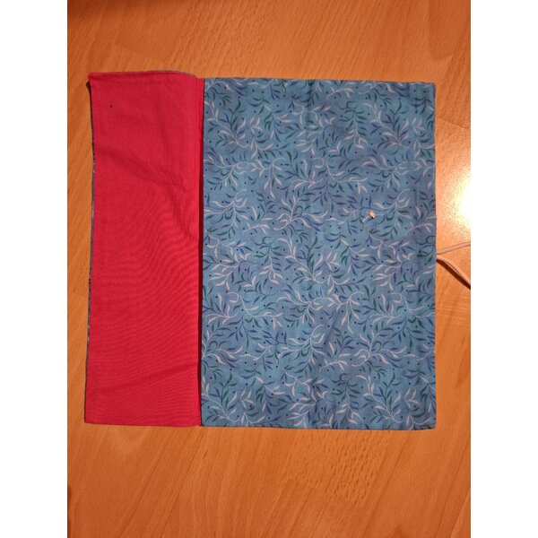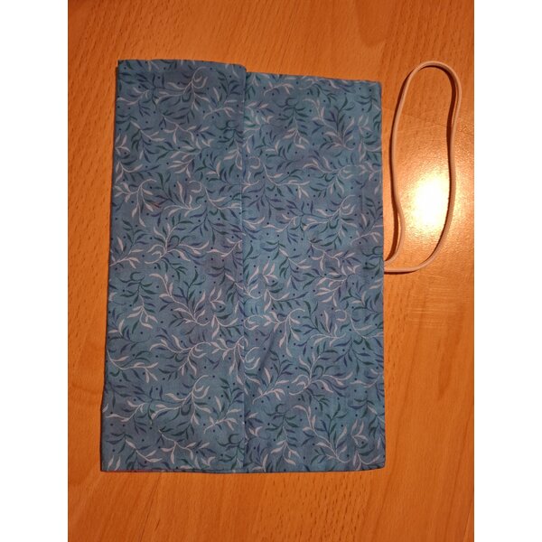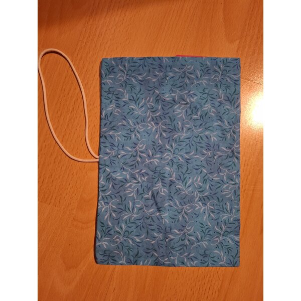 Büchertasche doppellagig genäht, ohne Fütterung, mit Gummiband zu verschließen, ca 17 x 25 cm groß.