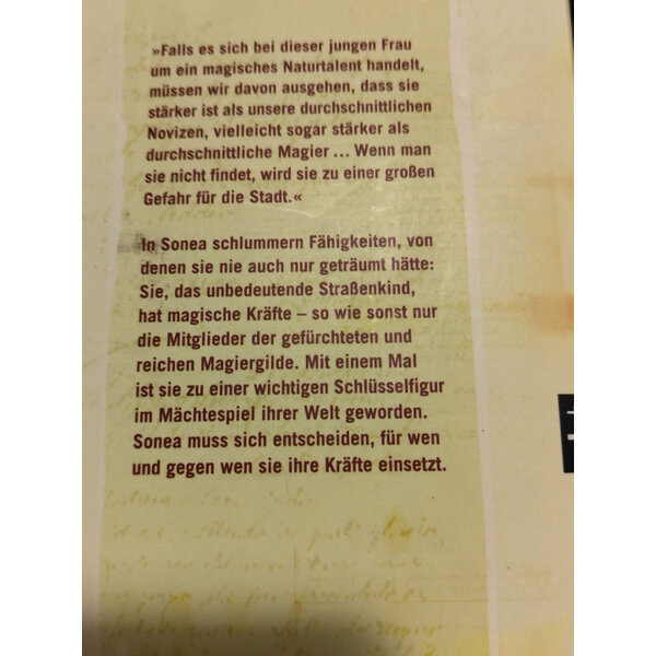 Das Wichtigste für den Magier ist Wissen. Ohne Wissen ist seine Stärke nutzlos. Sonea, ein Mädchen aus armen Verhältnissen ist dabei die Hauptfigur.