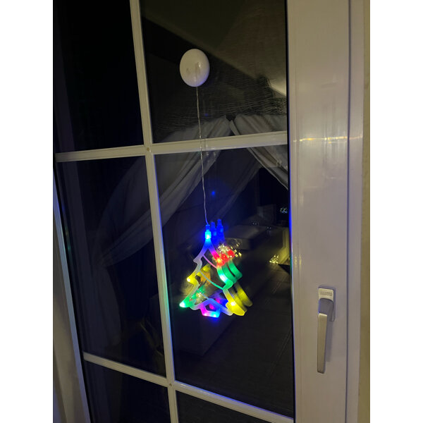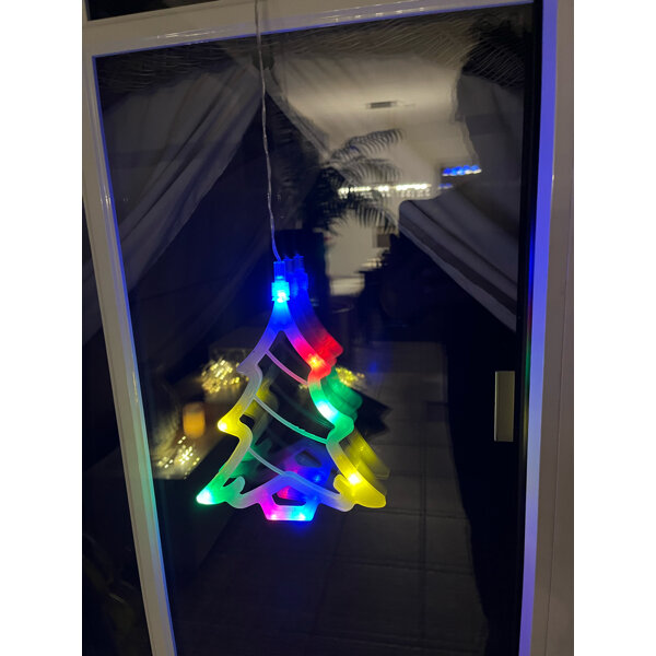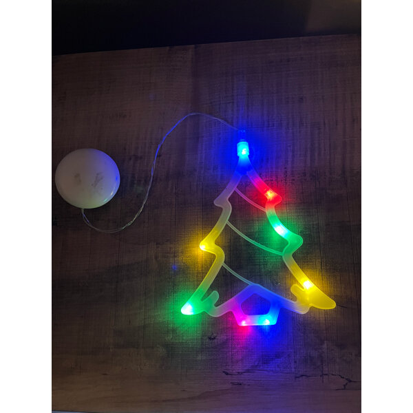Toller Weihnachtsbaum fürs Fenster bunt, mit Batterien, hat keinen Timer mit Saugknopf fürs Fenster. 23 cm hoch