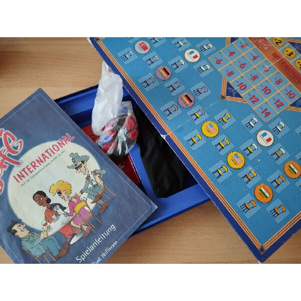 Wurde sehr oft und gerne gespielt, daher starke Gebrauchsspuren, aber durchaus für weitere Spielrunden prima geeignet