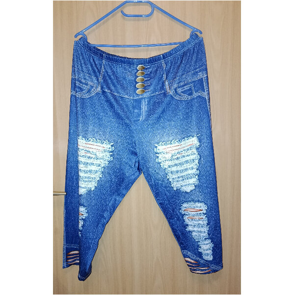 Capri Leggings aus dehnbarem Stoff. Sieht getragen aus wie Jeans. Ausgezeichnet ist sie mit 3XL. Sie ist passend bei 54/56 (mir leider zu gross). Sie wurde nur einmal anprobiert. Wenn Ihr Maße benötigt messe ich gern nach. Versand als Büwa.
