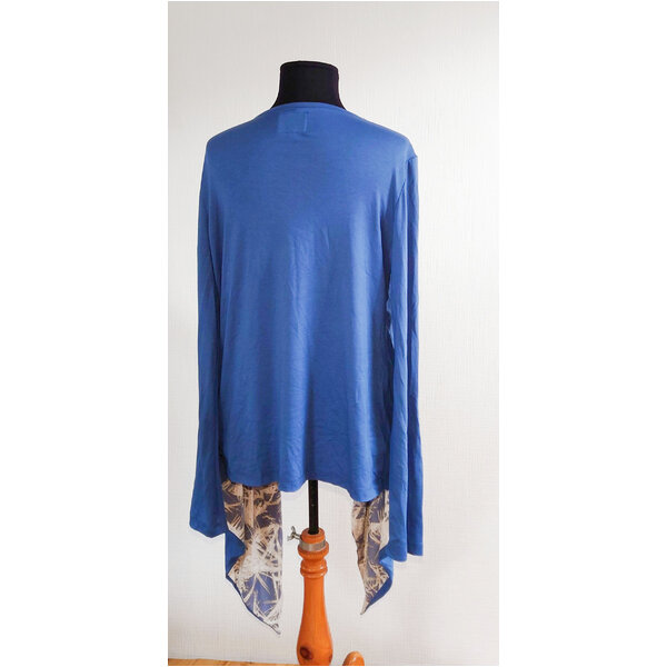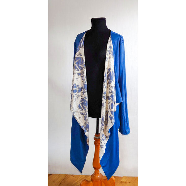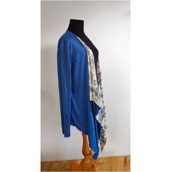 sehr schöner Cardigan aus blauem, hochwertigen Baumwollstoff. Innen mit Musterstoff abgesetzt.