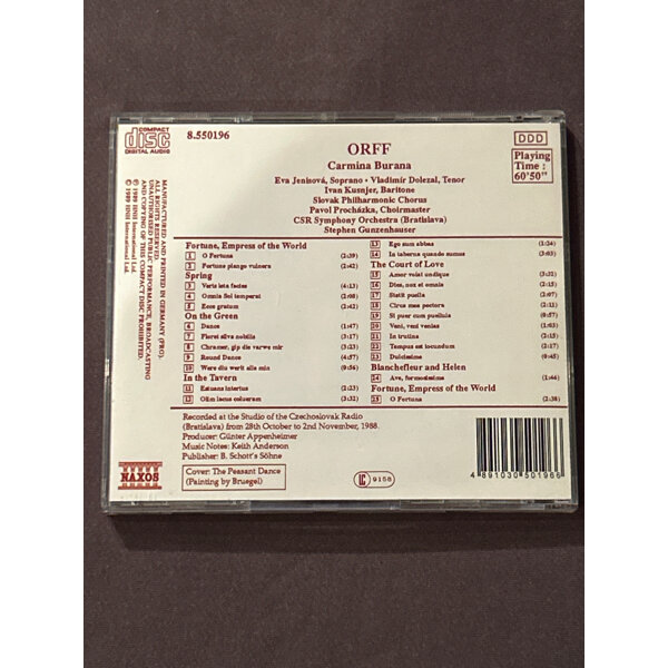 Carl Orff, Eva Jenisová, Vladimír Doležal, Ivan Kusnjer, Slovak Philharmonic Chorus, Slovak Radio Symphony Orchestra, Stephen Gunzenhauser