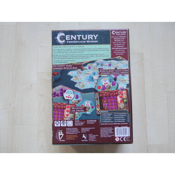 Natürlich lassen sich die Century-Spiele untereinander kombinieren. So können Besitzer des Vorgängers Century - Die Gewürzstraße beide Spiele kombinieren und mit ihrer Karawane aus der Wüste gleich in See stechen. Hierfür bietet Century - Fernöstliche Wunder aufregende, neue Regeln die ein komplett neues Spielgefühl vermitteln!