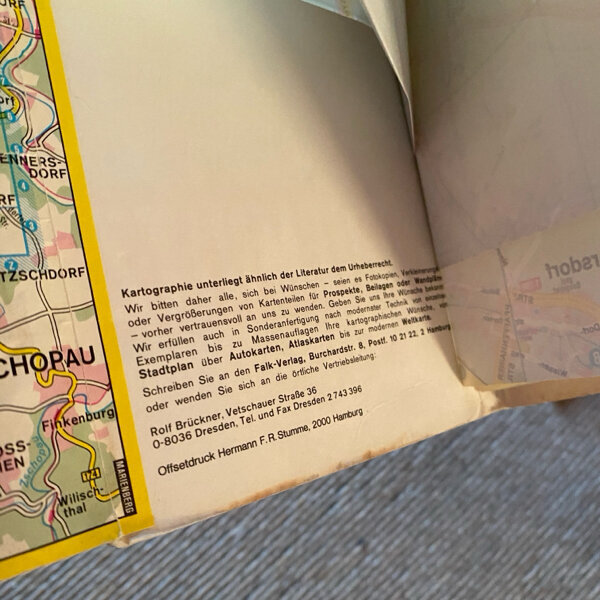 Alter 1997 Stadtplan Chemnitz. Fall Plan Falk-Verlag 2. Auflage historisch