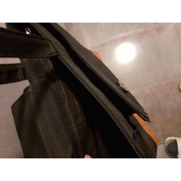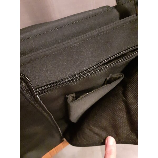 Vorn an der Tasche ebenfalls ein Fach mit Handfach, an der Seite mit Reissverschluss zu öffnen (oben aber offen)- siehe Photo 3.