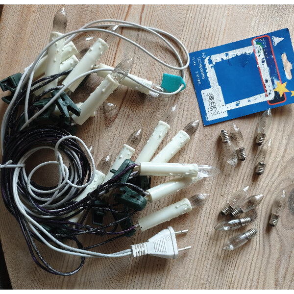 Nur für die Innenbeleuchtung. Ich habe sie immer mit einer Zeitschaltuhr kombiniert. Das Kabel hatte ich im Bereich des Baumes mit Edding geschwärzt, das Kabel vor der Wand ist weiß. Ich gebe 9 Ersatz Birnen dazu.