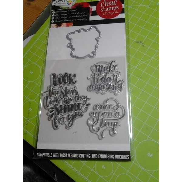 1 Stanform (für Big shot o.ä) und 3 Sprüche in englisch, siehe Bild