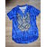 Blaues Batikshirt mit Frontschnürung, Größe steht leider nicht drin. Ich tippe auf Größe M-L.