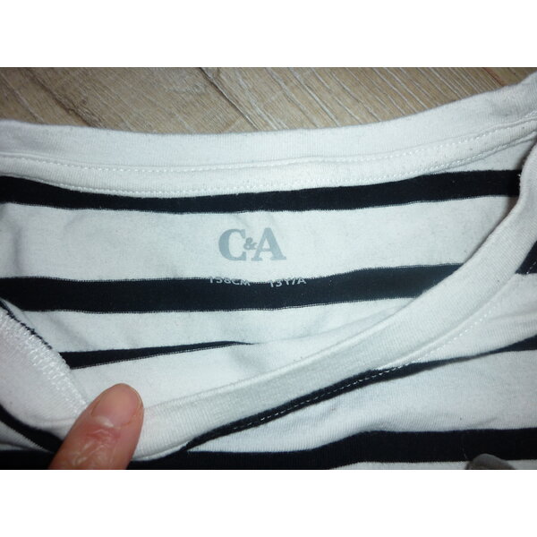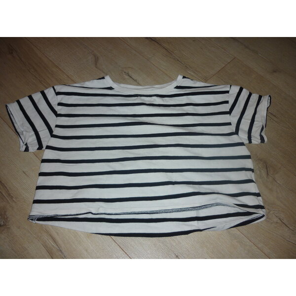 Crop Shirt in weiß mit schwarzen Streifen, von C&A, Größe 158 - passt auch schon bei 152, Baumwolle mit Elasthan, gern getragen, daher Waschpilling