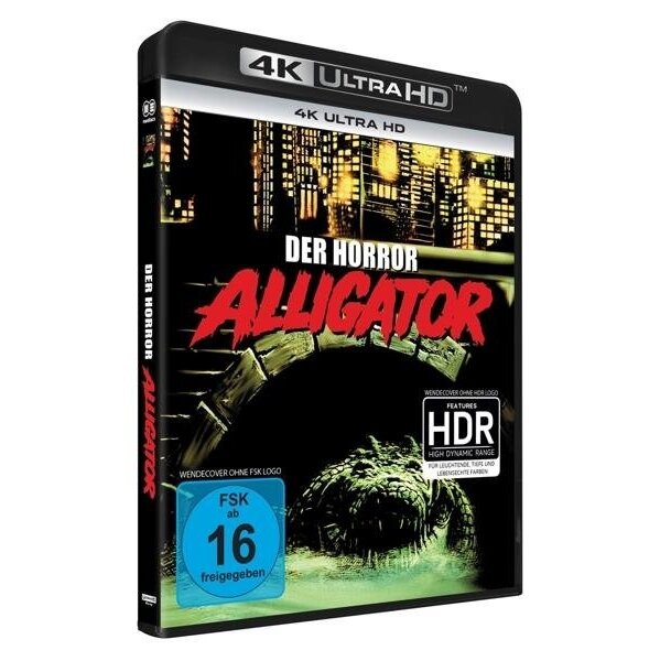 DER HORROR-ALLIGATOR - Durch die Toilette gelangt er vom Abfluss in die Kanalisation und ernährt sich zunächst von den Kadavern dort heimlich abgelagerter Versuchstiere. Diese wurden mit experimentellen Hormonen behandelt, wodurch er zu monströser Größe heranwächst. Als die Vierbeiner den täglichen Grundnahrungsbedarf des Reptils nicht mehr decken können, geht das Ungeheuer zu einer anderen Spezies über und setzt den Homo Sapiens ans Ende der Nahrungskette. Als 12 Jahre später immer wieder menschliche Leichenteile aus der Kanalisation gefischt werden, glaubt man zunächst an einen Serienkiller, bis einem übereifrigen Reporter etwas vor die Linse seiner Kamera kommt, das nach einem riesigen Maul mit 68 Zähnen aussieht. Bevor die Stadtverwaltung und der Polizeichef erahnen können, in welcher Gefahr die Bevölkerung schwebt, bricht DER HORROR-ALLIGATOR die Straße auf und schnappt sich, was ihm vor das Maul kommt...