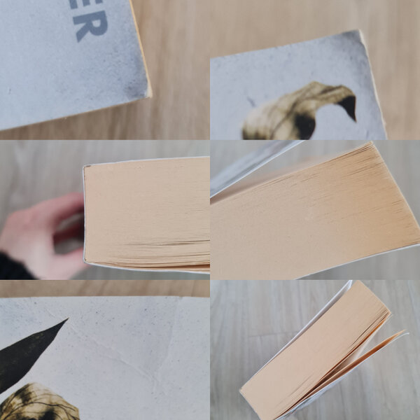 Das Buch wurde gebraucht gekauft und weist deutliche Gebrauchsspuren auf. Die Seiten sind sehr deutlich vergilbt (siehe Fotos). Außerdem ist das Cover geknickt und die Ecken und Kanten sind deutlich angestoßen (siehe Fotos). Der Buchrücken ist gerundet (siehe Fotos).
