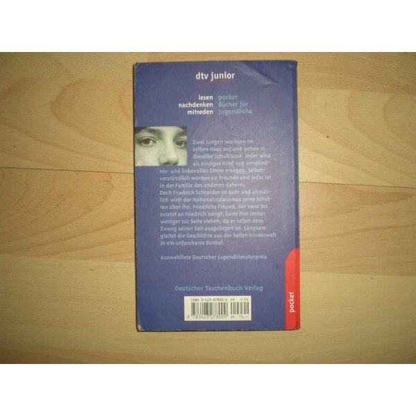Zwei Jungen wachsen im selben Haus auf und gehen in dieselbe Schulklasse.Jeder wird als einziges Kind von verständlich -und liebevollen Eltern erzogen.Selbstverständlich werden sie Freund und jeder ist in der Familie des anderen daheim.Doch Friedrich Schneider ist Jude und allmählich wirft der Nationalismus seine Schatten über ihn. Friedrichs Freund,der zwar bis zuletzt an Friedrich hängt,kann ihm immer weniger zur Seite stehen,da er selbst dem Zwang seiner Zeit ausgeliefert ist.Langsam gleitet die Geschichte aus der heilen Kinderwelt in ein unfassbares Dunkel.