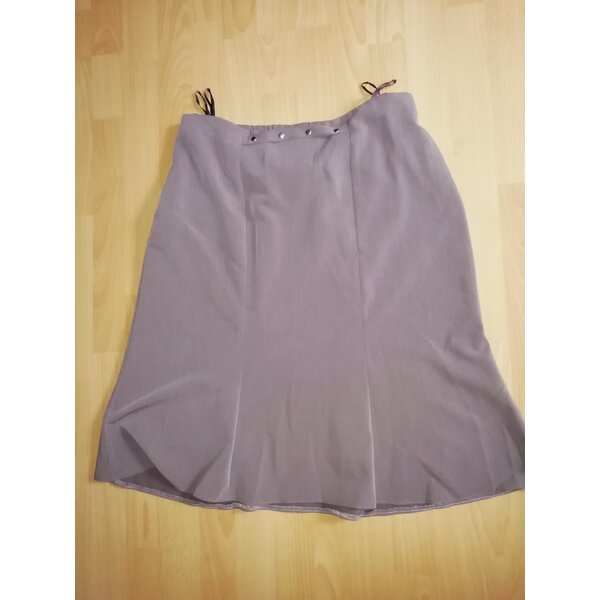 Damen-Glocken-Rock Gr. 22 (kurze 44) von der Wilhelm Monhemius GmbH, mittelbraun, hinten mit Gummizug, Material: 70 % Polyester, 25 % Viskose, 5% Elasthan, leicht gefüttert, 100 % Polyester, maschinenwaschbar bis 30 Grad Celsius.
