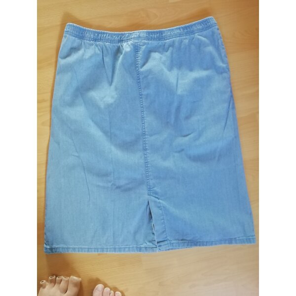 Damen-Rock Gr. 46, von AProductZ, mit Gummizug ringsum, im Jeanslook, aber leichter, hinten ein kurzer verdeckter Schlitz, 100 % Baumwolle, 2 Einschubtaschen vorn, maschinenwaschbar bis 40 Grad Celsius.