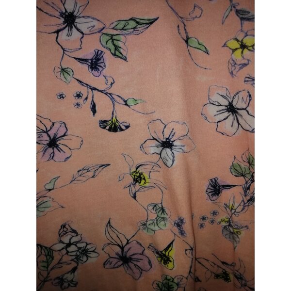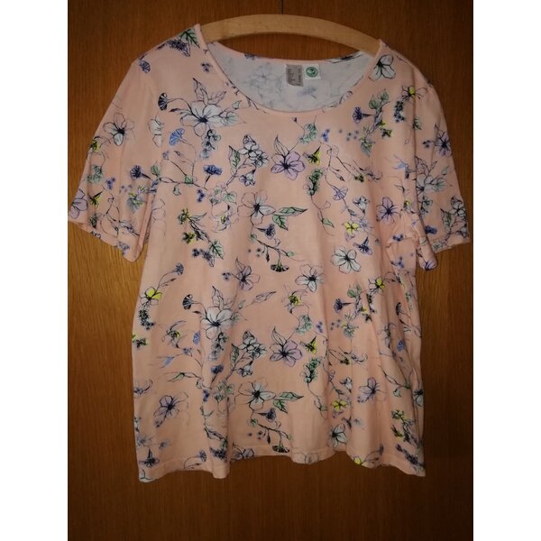 Damen-T-Shirt Gr. 44 von AProductZ,lachsfarben mit Blumenmuster, 100 % Baumwolle, maschinenwaschbar bis 30Grad Celsius.
