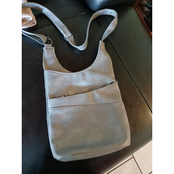 Super handtasche mit langem schultergurt. In grau mit aussen seitenfächern such neuen Benutzer