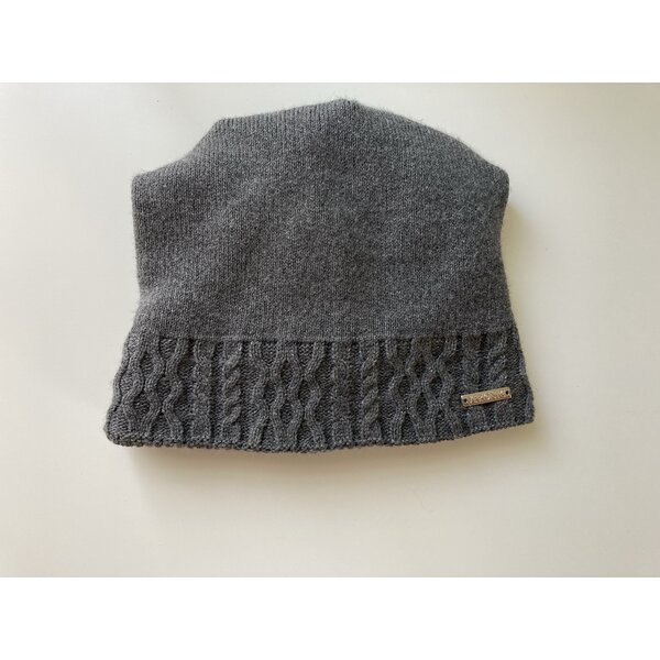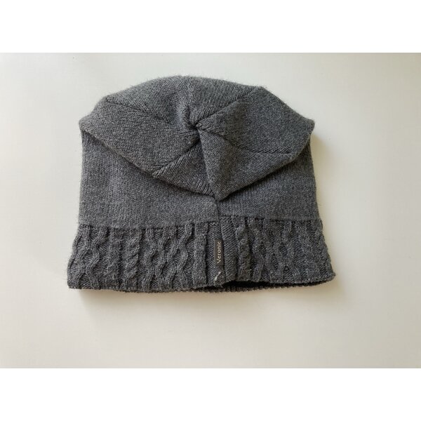 Schicke Mütze mit interessanter Rückseite. In der Zopfborte leichter Glitzer