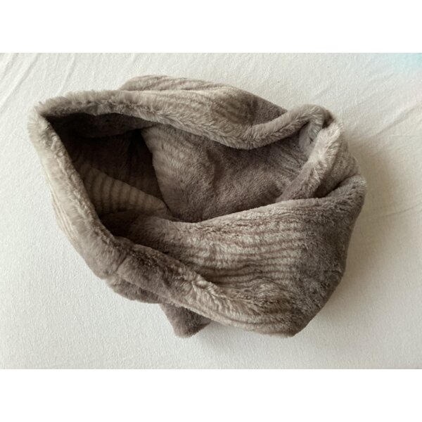 Ungetragener kuscheliger Schal in neutraler Farbe
