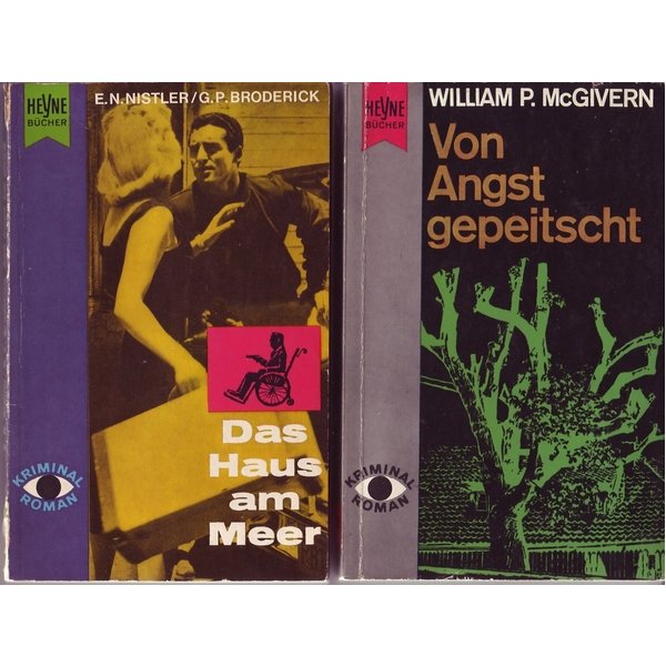 zwei Krimis: "Von Angst gepeitscht" von William P. McGivern (1961) und "Das Haus am Meer" von E.N. Nistler / G.P. Broderick (1960), bei dem zweit genannten hält die Leimung nicht mehr, Seiten sind aber alle vorhanden.