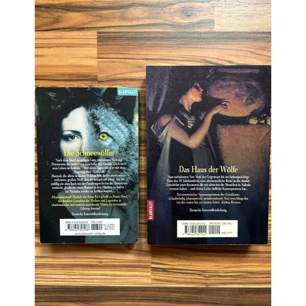 Beide Bücher wurden von mir 1x vorsichtig gelesen, sieht man ihnen jedoch nicht an. Hier und da sind Kanten und Ecken sowie Buchschnitt bestoßen. Buchschnitt vergilbt. Aus Nichtraucherhaushalt.