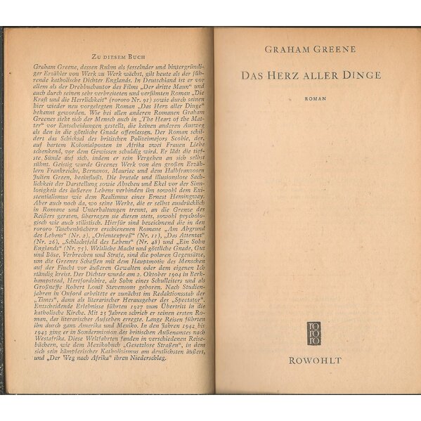 Wie bei allen anderen Romanen Graham Greenes sieht sich der Mensch auch in"The Heart of the Matter" vor Entscheidungen gestellt, die keinen anderen Ausweg als den in die göttliche Gnade offenkassen. Der Roman schildert das Schicksal des britischen Polizeimajors Scobie, der, auf hartem Kolonialposten in Afrika zwei Frauen Liebe schenkend, vor dem Gewissen schuldig wird. Er lädt die tiefste Sünde auf sich, indem er sein Vergehen an sich selbst sühnt.