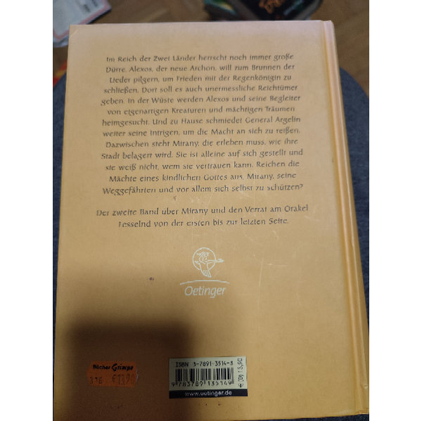 Im Reich der Zwei Länder herrscht noch immer große Dürre. Alexos, der neue Archon, will zum Brunnen der Lieder pilgern, um Frieden mit der Regengöttin Frieden zu schließen. Während seine Begleiter und er in der Wüste von eigenartigen Kreaturen und mächtigen Träumen heimgesucht werden, spitzt sich zu Hause die Situation zu. Mirany muss erleben, wie die Feinde von Alexos die Stadt belagern. Sie weiß nicht mehr, wem sie vertrauen kann. Reichen die Mächte von Alexos, dem kindlichen Gott, aus, Mirany, seine Gefährten und sich selbst zu schützen? Ein atemberaubendes Fantasy-Abenteuer - fesselnd bis zur letzten Seite!