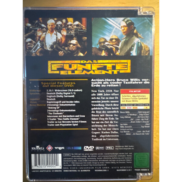 New York, 2259. Nur alle 5000 Jahre öffnet sich das Tor zur Dimension jenseits unserer Vorstellung. Durch diese galaktische Pforte betritt die Brut des unendlich Bösen mit ihrem Anführer Zorg die Erde. Sie hat nur ein Ziel: die Vernichtung der Menschheit. Sie hat nur einen Gegner: Korben Dallas, den abgefahrensten Taxifreak im Universum...