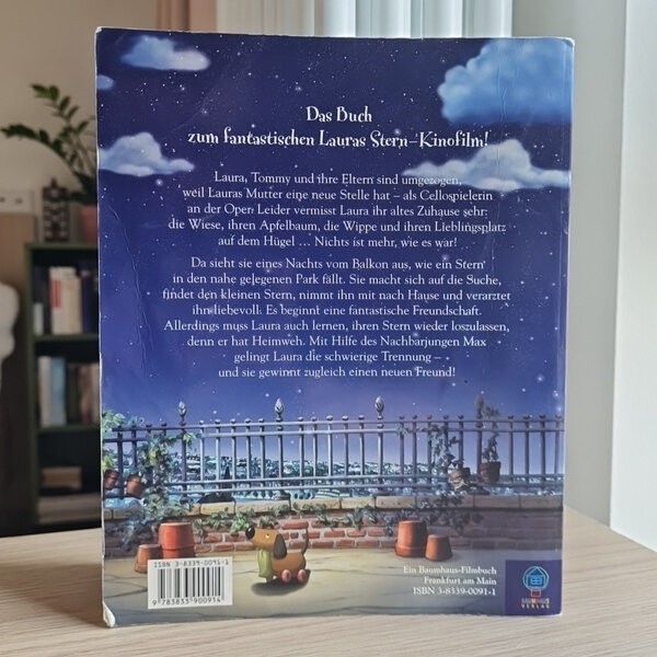 Laura, Tommy un d ihre Eltern sind umgezogen, weil Lauras Mutter eine neue Stelle hat - als Cellospielerin an der Oper. Leider vermisst Laura ihr altes Zuhause sehr: die Wiese, ihren Apfelbaum, die Wippe und ihren Lieblingsplatz auf dem Hügel ... Nichts ist mehr, wie es war. Da sieht sie eines Nachts vom Balkon aus, wie ein Stern in den nahe gelegenen Park fällt. Sie macht sich auf die Suche, findet den kleinen Stern, nimmt ihn mit nach Hause und verarztet ihn liebevoll. Es beginnt eine fantastische Freundschaft. Allerdings muss Laura auch lernen, ihren Stern wieder loszulassen, denn er hat Heimweh. Mit Hilfe des Nachbarjungen Max gelingt Laura die schwierige Trennung - und sie gewinnt zugleich einen neuen Freund!