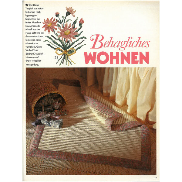 Zusätzlich ist ein doppelseitig bedruckter Bogen zum Auseinanderfalten vorhanden, der Stickmuster und Schnittvorlagen enthält.