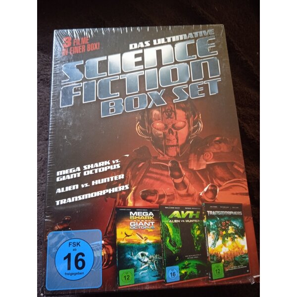 Neu, noch original eingeschweisst, wenn auch mit kleinen Rissen in der Original-Einschweiss-Plastikhülle über der eigentlichen unbeschädigten Pappbox mit den 3 DVDs