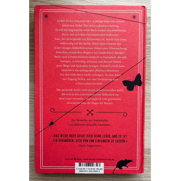 Mit Büchern kann der 13-jährige Juan wenig anfangen, bis er die Sommerferien bei seinem buchvernarrten Onkel Tito verbringt. Der lebt in einer gigantischen Bibliothek und er hat gleich einen Auftrag für Juan: Er soll das wilde Buch finden, ein rebellisches Buch, das sich dem Gelesenwerden widersetzt und lange von niemandem gefunden werden konnte. Juan lässt sich auf das Abenteuer ein. Zwischen sonderbaren Buchtypen entdeckt er die tollsten Geschichten – nur das wilde Buch nicht. Erst als er seine erste Liebe, die Apothekerstochter, von der Magie der Bücher überzeugt und eine Verbindung zum echten Leben herstellt, offenbart es sich … Ein fantasievolles Jugendbuch über die Liebe zum Lesen.