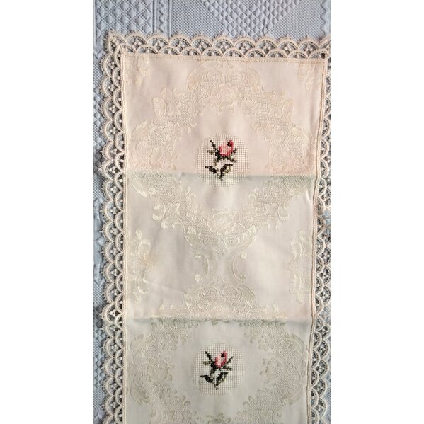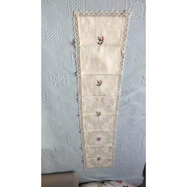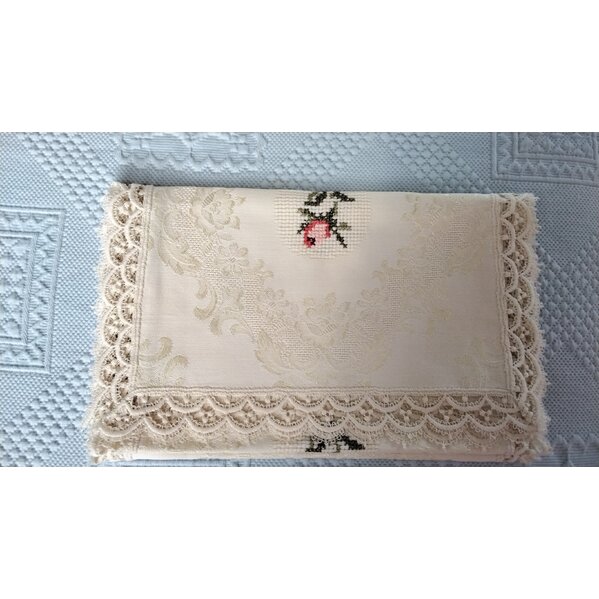 Vintage-Tischdecke im Landhausstil mit Blumenstickerei.