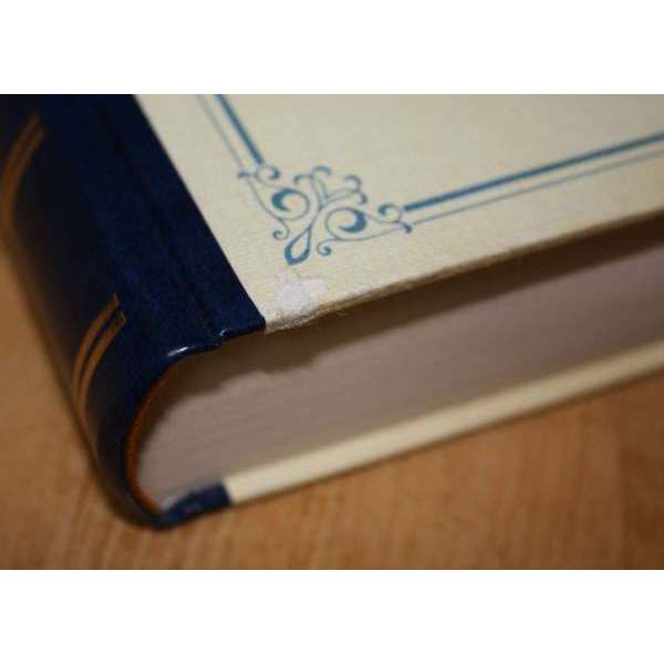 Buchrücken ist aus Lederimitat oder Leder (konnte das noch nie unterscheiden) mit Goldverzierungen.