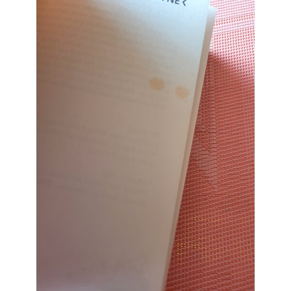 Deutsche Erstausgabe, ME-Aufdruck auf unterem Buchschnitt, Buchschnitt nachgedunkelt, Ecken und Kanten minimal bestupst, Leserillen im Buchrücken, Preis-Aufkleberreste auf der Rückseite, Fleck auf der ersten Seite (siehe Foto)