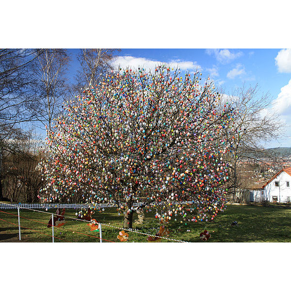 Der Saalfelder Ostereierbaum ist ein durch seinen Osterschmuckbehang mit bis zu 10.000 Eiern bekannt gewordener Apfelbaum der Familien Kraft und Rumrich im thüringischen Saalfeld. Er stand bis 2015 im Garten der Familie Kraft am südlichen Stadtrand im Wohngebiet Auf den Rödern. Seither stand er an wechselnden Orten innerhalb der Stadt, zuletzt in der Fußgängerzone im Stadtzentrum. Alle Eier sind mundausgeblasen, die meisten werden danach ein- oder mehrfarbig mit Mustern besprüht. Daneben findet sich eine Vielzahl an bemalten Eiern mit Motiven der Stadt, so etwa die Stadttore oder das Heimat-Museum, aber auch berühmter Gebäude weltweit. Viele Eier sind aufwändig umhäkelt und damit zusätzlich gegen Witterungseinflüsse geschützt. Jahr für Jahr kommen neue Motive oder Techniken hinzu, so sind seit 2009 auch perforierte Eier am Baum zu finden. Einige Eier werden weitreichender umgestaltet und erhalten so beispielsweise die Form von Fröschen, Schildkröten, Igeln oder Heißluftballons. Dazu werden mit Modelliermasse weitere Feinheiten der Eier gestaltet