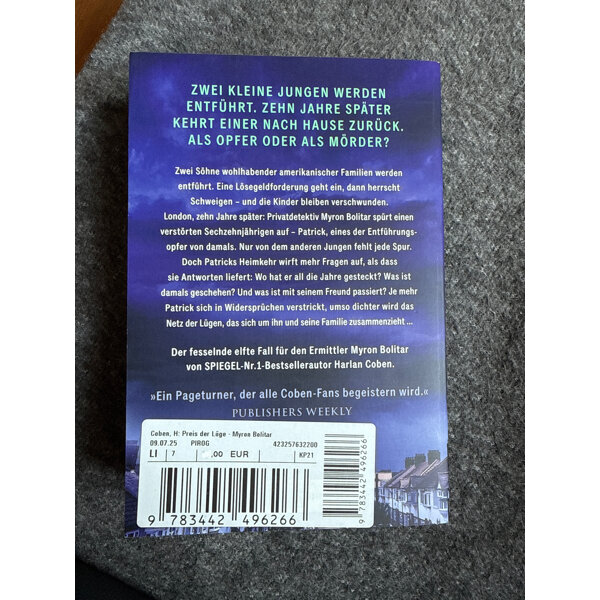 Zwei Söhne wohlhabender amerikanischer Familien werden entführt. Eine Lösegeldforderung geht ein, dann herrscht Schweigen – und die Kinder bleiben verschwunden. London, zehn Jahre später: Privatdetektiv Myron Bolitar spürt einen verstörten Sechzehnjährigen auf: Patrick, eines der Entführungsopfer von damals. Von dem anderen Jungen fehlt jede Spur. Patricks Heimkehr wirft allerdings mehr Fragen auf, als sie Antworten liefert: Wo hat er all die Jahre gesteckt? Was ist damals geschehen? Und was ist mit seinem Freund passiert? Je mehr Patrick sich in Widersprüchen verstrickt, umso dichter wird das Netz der Lügen, das sich um ihn und seine Familie zusammenzieht …