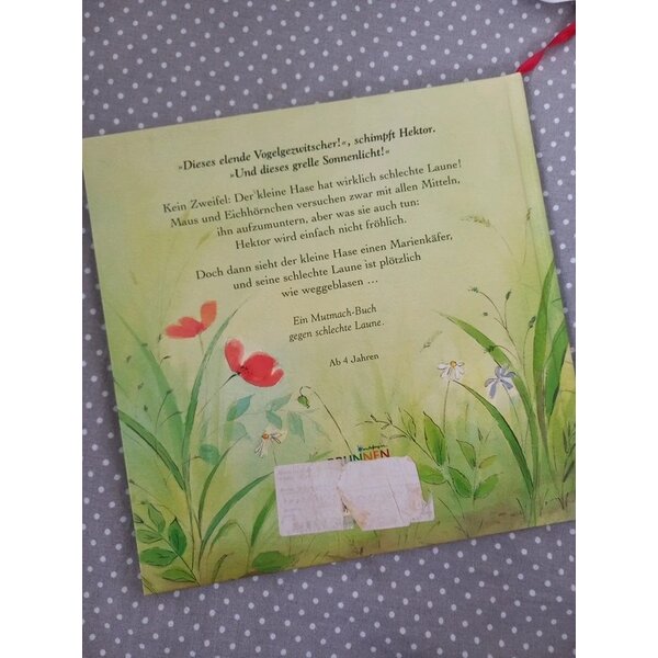 "Dieses elende Vogelgezwitscher!", schimpft Hektor. "Und dieses grelle Sonnenlicht!" Kein Zweifel: Der kleine Hase hat wirklich schlechte Laune ausgerechnet an einem so wunderschönen Sonnentag! Maus und Eichhörnchen versuchen mit allen Mitteln, den missmutigen Hektor aufzumuntern, aber was sie auch tun: Er wird einfach nicht fröhlich! Doch dann entdeckt der kleine Hase einen Marienkäfer, der dringend Hilfe braucht. Und plötzlich ist Hektors schlechte Laune wie weggeblasen