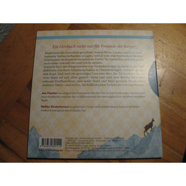 Damit hatte der Arno nicht gerechnet: Statt in den Großstädten Europas internationale Verbrecherbanden zu jagen, wird er vom BKA ins hinterste Tiroler Tal strafversetzt. Immerhin wird ihm gleich nach seiner Ankunft die erste Leiche serviert. Erwischt hat’s den Bürgermeister von Vorderkitzlingen. Er steckt in der Tiefkühltruhe von Resis Schnitzelparadies in Hinterkitzlingen. Genauer gesagt: sein Kopf. Und weil ein gewaltiges Unwetter über das Tal hereinbricht, ist Arno Bussi auf sich allein gestellt. Seine Suche nach dem Mörder führt über äußerst seltsame Dorfbewohner, eine außer Rand und Band geratene Natur und einen weiteren Toten zu Eva, der bildhübschen Tochter der Schnitzelwirtin.