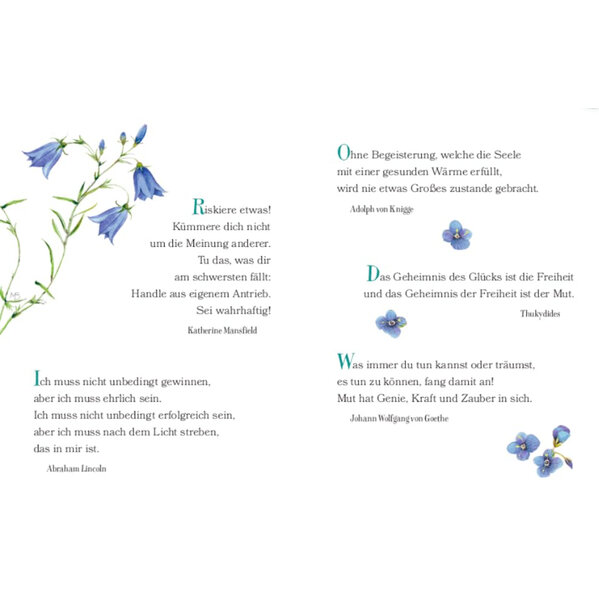 Zuversicht und Mut machen die Weisheiten und Aphorismen in diesem von Marjolein Bastin zauberhaft illustrierten Buch – ein wunderbares kleines Geschenk für alle, denen wir Glück wünschen.