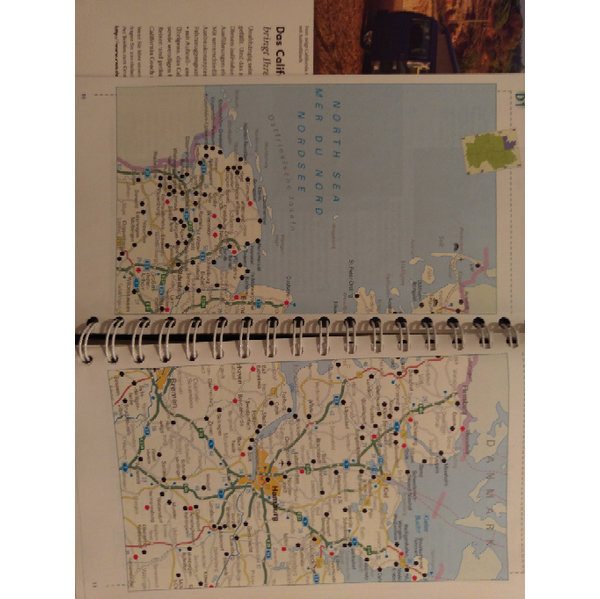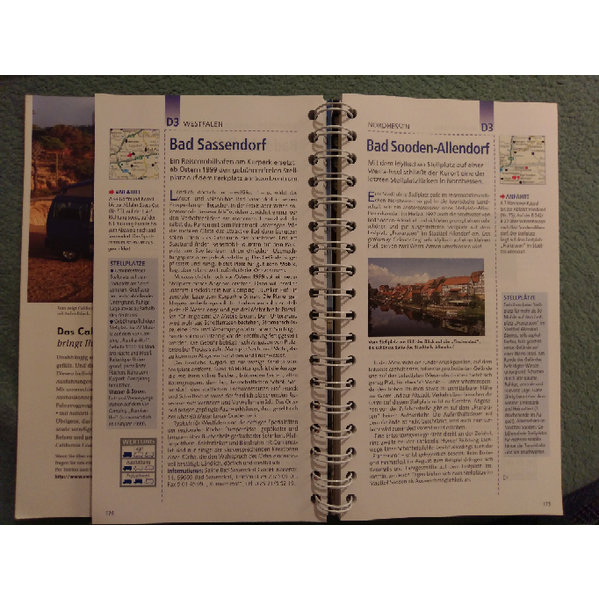 Wohnmobil-Stellplatzführer in Kartoneinband , innen mit Ringbuchlochung auf Spiralkabel. Dadurch sehr gut bedienbar und handlich. Format: 24x14,5x2,5 cm.