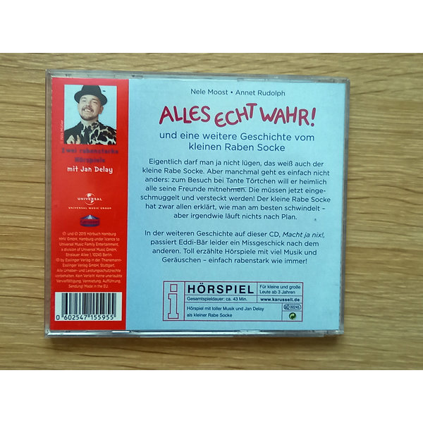 Eigentlich darf man ja nicht lügen – das weiß auch der kleine Rabe Socke. Aber wenn man erst mal damit angefangen hat, dann ist es ziemlich schwer wieder damit aufzuhören. Socke, Stulle, der Dachs und Eddi-Bär fahren in den Ferien zu Stulles Tante Törtchen auf den Bauernhof. Was Tante Törtchen allerdings nicht weiß, ist, dass die vier heimlich alle ihre Freunde mitgebracht haben. Die müssen jetzt eingeschmuggelt und versteckt werden, und was zu essen und einen Schlafplatz brauchen sie auch. Der kleine Rabe hat zwar schon auf der Hinfahrt allen erklärt, wie man am besten schwindelt – aber irgendwie läuft nichts nach Plan.
