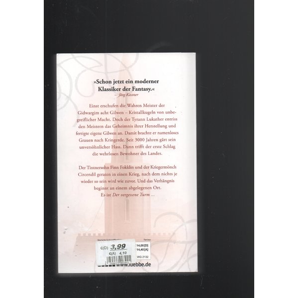 Der Tintnersohn Finn Fokklin und der Kriegermönch Circendil geraten in einen Krieg, nach dem nichts je wieder so sein wird wie zuvor. Und das Verhängnis beginnt an einem abgelegenen Ort. Es ist Der vergessene Turm ...