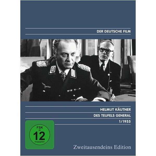 Des Teufels General - Zweitausendeins Edition Deutscher Film 1/1955. Des Teufels General - Zweitausendeins Edition Deutscher Film 1/1955. Empfehlen Des Teufels General - Zweitausendeins Edition Deutscher Film 1/1955. SKU# 895226 General Harras – Fliegerass, Frauenheld und zynischer Opportunist – glaubt nicht mehr an den Endsieg. Als nacheinander mehrere neu konstruierte Flugzeuge abstürzen, wird er der Sabotage verdächtigt. Die Gestapo setzt ihn unter Druck. Harras findet heraus, dass sein engster Vertrauter der Saboteur ist. Doch Harras kann den verzweifelten Widerstandsakt nur zu gut verstehen und beschließt, seinen Freund zu schützen. Helmut Käutner inszeniert konsequent den zwiespältigen und zerrissenen Helden aus Carl Zuckmayers gleichnamigem Bühnenstück. Curd Jürgens wurde für seine Rolle auf den Filmfestspielen in Venedig 1955 als Bester Darsteller ausgezeichnet. Kriegsfilm mit Curd Jürgens, Marianne Koch, Viktor de Kowa, Karl John u.a. Regie: Helmut Käutner. Extras: Fotogalerie, Starinfos von Carl Zuckmayer und Curd Jürgens, Trailer u.a. Spr.: D. 115 Min. FSK 12. Mono DD. Zweitausendeins Edition. DVD. Produktionsland: BR Deutschland Produktionsjahr: 1955 Produktionsfirma: Real Darsteller: Curd Jürgens (General Harras), Viktor de Kowa (SS-Gruppenführer), Karl John (Ingenieur Oderbruch), Eva-Ingeborg Scholz (Waltraud Mohrungen), Marianne Koch (Diddo Geiss), Camilla Spira (Olivia Geiss), Albert Lieven (Oberst Eilers), Beppo Brem (Hauptmann Pfundtmayer), Joseph Offenbach (Kriminalrat) Produzent: Walter Koppel Regie: Helmut Käutner Drehbuch: Georg Hurdalek, Helmut Käutner Kamera: Albert Benitz Musik: Archivmaterial Schnitt: Klaus Dudenhöfer Vorlage: Carl Zuckmayer Auszeichnungen Venedig (1955, Bester Darsteller – Curd Jürgens)