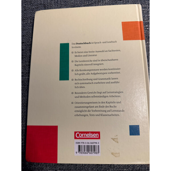 Das Deutschbuch ist Sprach- und Lesebuch in einem:Es bietet eine breite Auswahl an Sachtexten, Medien und Literatur.Die Lernbereiche sind in überschaubaren Kapiteln sinnvoll integriert.Der Kapitelaufbau in drei Schritten ermöglicht systematisches und integratives Arbeiten.Alle Kernkompetenzen werden kontinuierlich geübt, alle Aufgabentypen vorbereitet.Rechtschreibung und Grammatik lassen sich systematisch erarbeiten und ausführlich üben.Besonderes Gewicht liegt auf Lernstrategien und Methoden selbstständigen Arbeitens.Orientierungswissen in den Kapiteln und zusammengefasst am Ende des Buchs ermöglicht die Vorbereitung auf Lernstandserhebungen, Tests und Klassenarbeiten.
