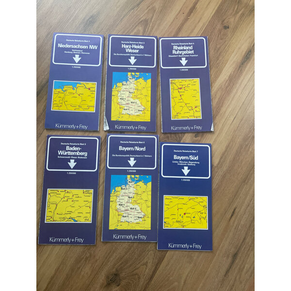 deustche reisekarte blatt 2-6 niedersachsen harz heide weser rheinland ruhrgebiet baden wurtenberg b