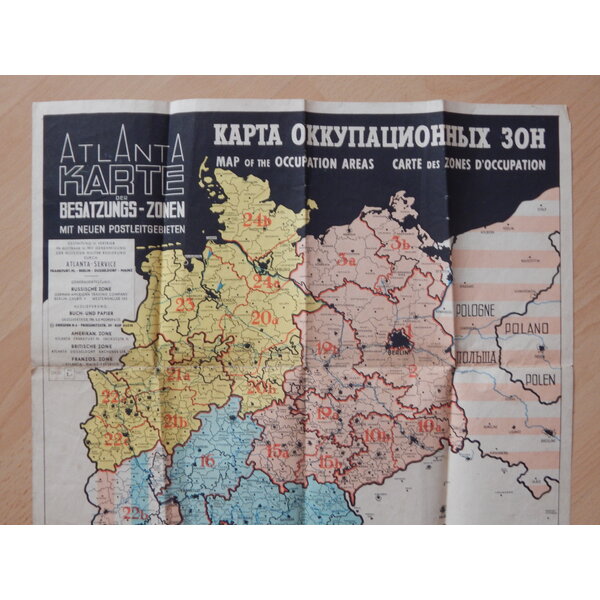 Deutschland 1946 - Besatzungszonenkarte mit neuen Postleitgebieten und Postleitzahlen
