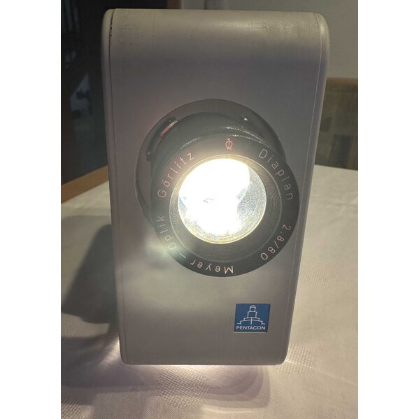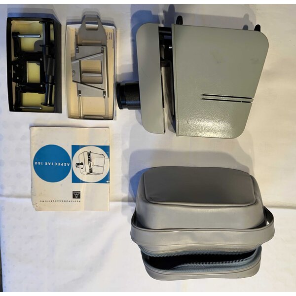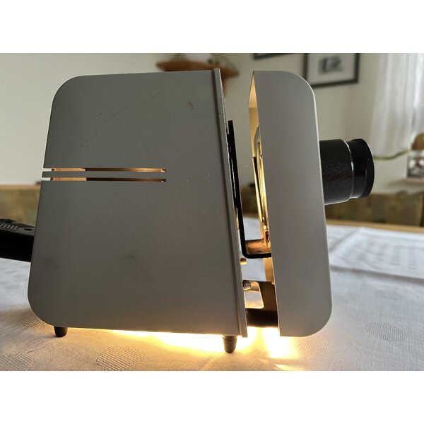 voll funktionsfähig mit Dia-Führung und Laterna Magica-Zusatz für Rollfilme sowie Breitschaftstasche.