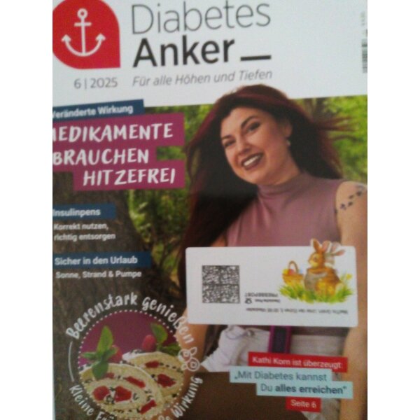 Diabetes Anker Juni 2025 u. a. mit diesen Themen: Veränderte Wirkung - Medikamente brauchen Hitzefrei! Insulinpens - korrekt nutzen, richtig entsorgen. Sicher in den Urlaub - Sonne, Strand & pumpe. Beerenstark genießen - kleine Früchte, große Wirkung und vieles mehr rund um das Leben mit Diabetes.
